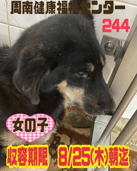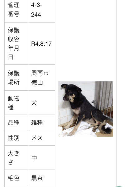 | 里親募集する理由 | 周南市は野犬が多く次々と収容されます 収容されれば1週間の期限が付けられ引き取りが無ければ、山口動物愛護センターへ移送され殺処分となります 野犬として生まれただけです 人間の身勝手な都合で同じ生きている命を無かったものにする行為は許されるものではありません 元はと言えば人間が捨てたことから生まれたものです 人間が棒を持ち追い払ったり蹴ろうとすれば犬も身を守るために口が出るでしょう 野犬も必死に生きています! 人間と生活をしたことがないので恐れ怖がります 時間をかければ愛情は必ず伝わります 人間の中にも優しい人はいるんだと教えてください 家庭犬として何ら変わらない 可愛いく愛おしい存在になる事は間違いありません 今までも沢山の野犬が里親さまの元へ譲渡されお散歩し甘え幸せに暮らしています どうかこの子達の命を無かったものにはしないでください どうか家族として終生大事に寄り添っていただきたいです |