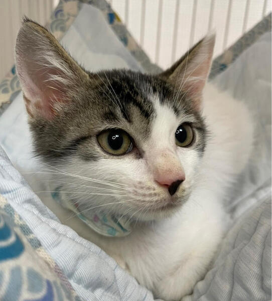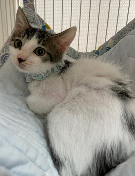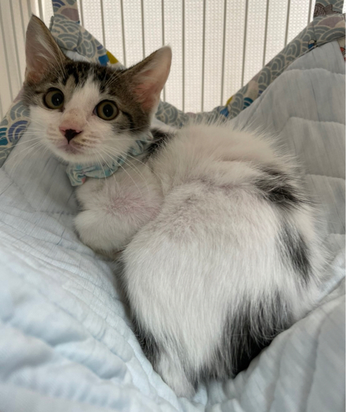 | 特徴(性格など) | 川崎市大量TNR現場からレスキューした子達です。 ーーーーーーーーーーーーーーーーーーー 【性格】白キジのかわいい子猫ちゃんのご紹介です。 その前に先ずはこの子を保護した経緯からお話致します。 神奈川県川崎市の某区にて、沢山の野良猫さん達が繁殖している地帯がありました。 そこに産まれてくる子猫達が生き残るのはあまりにも過酷過ぎる環境でした。 TNR活動の傍ら子猫達は全匹レスキューし、14匹の子猫達を川崎から連れて来ました。 YouTubeちゅー猫チャンネルにて、しろみつくんを保護した時の動画はこちらhttps://youtu.be/Wk8tvD1iR74 最近の様子はこちらhttps://youtu.be/NS1woF8OvVo そんなしろみつくんは、三兄弟でした。 まだママ猫のおっぱい恋しい時期に捕獲にあたり、初めに1匹の保護に成功したものの、しろみつくんと同じ兄弟のくろみつくん(黒猫)は、なかなか保護をするのに苦戦しました。 それだけママ猫さんがしっかりと守ってくれた証だと思っております。(ママ猫さんはTNR済みで餌場で元気にしてます。) 人馴れ度は、まだ発展途上の段階です。 これから慣れていくかな?といった段階であり、まだまだ人間には靡かないぞ〜!っと、元野良猫の子猫として、かわいい小さな抵抗をしている段階です。 この段階で敢えて里子に出すのは、この子達にはこれからじゅうぶんに『のびしろ』があると判断したからです。 ぜひ、迎えてくださる里親様のもとで慣れて欲しいという願いから、この度の譲渡会に出場させていただきます。 噛み付いたり猫パンチなどもなく、ただ、ただ、まだビクビクしている段階です。 美味しいご飯やオモチャで釣ってあげてください! その辺のアドバイスなどは、懐くまで当会で責任を持ってお付き合いさせていただきますのでご安心ください。 出来れば、この子達を懐かせる為には、同じ兄弟のくろみつくんと一緒に迎えてくださればありがたいです。 もし?年上の先住猫さんがいらっしゃるご家庭でも大丈夫です。 しろみつくんは、猫の社会化には長けておりますが、現時点では1匹にするとピャーピャー鳴いてしまう寂しん坊やです。 一生を迎えてくださる里親希望者様に嘘をつきたくないので、ありのままの現実をお話させていただいております。 元野良猫の子猫ですから、当たり前の警戒心であり、それをご理解くださる方、ぜひ、お待ちしております! 小さな体で、小さな抵抗をしている姿が、我々にとってはとてもとてもかわいくて仕方ありません。 譲渡会でお待ちしております。 |