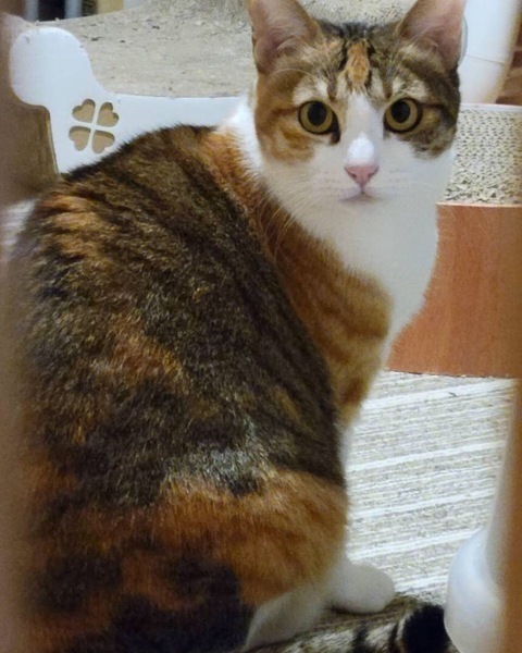 | 特徴(性格など) | 三毛猫のような麦わら毛柄の女の子、ユズです。 ルームには3匹一緒にやってきましたが元から居る他の猫たちとも仲良くできる子です。ルームでおもちゃなどで遊ぶようになり人馴れもしてきています。 猫エイズ (―) 白血病 (―) ワクチンは保護時に受けているのかが不明ですので体調を見て摂取を受けた方が良いなと思っています。 |