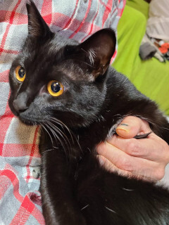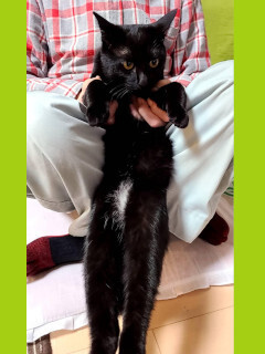 | 特徴(性格など) | ☆★☆★現在お見合い予定がございます☆★☆★ 仮名を『カシュカシュ』と言います。 黒猫の男の仔です。 TNR現場より保護されました。 クロネコですが、実は胸とお腹に少しだけ白い毛があるオシャレ上級さんです。 保護当時は、まだ人が少し怖かったので兄弟のごまちゃんの後ろにコッソリひっそり(笑)隠れていたカシュカシュですが、今は「ぼくはもう恐くないよー!」と 言わんばかりに「人間好き好き」「猫友も好き好き」「ご飯は何より大好き」と、伸び伸びした仔に育ちました(笑) 身体ががっしり丸いカシュカシュですが、そんなボディで「撫でてにゃ~」とスリスリされるともう堪りません。 お膝と抱っこも大好きでまずお膝に登り、次に抱っこへとルートが決まっているようです(笑) 預かり宅では夜寝るときはケージに入れておりますが、ナデナデとだっこをしてあげると満足するのか大人しくケージインしてくれます。とても賢い子です。 いたずら盛りなので、なんにでも興味津々。特に猫砂の袋、ご飯の袋、ビニール類などは大好きで齧りますので、誤飲しないように注意が必要です。 とにかく甘えん坊ちゃんです。思う存分に甘えさせてくれる方いっぱい遊んでくださる方フレンドリーな先住ちゃんがいるおうち兄弟のごまと二匹ご一緒のご縁も大歓迎です! 他猫との距離の取り方も上手です。 甘えん坊で食いしん坊で賢くて優しいカシュカシュ。 そんな「カシュカシュ」との素敵なご縁を探しております。 【医療処置情報】 *健康チェック *3種混合ワクチン接種 *ウイルス検査実施(FIV.FeLV共に陰性) *検便実施 *駆虫薬投与(フロントライン) *寄生虫駆除(プロコックス) *マイクロチップ装着 *不妊・去勢手術 |