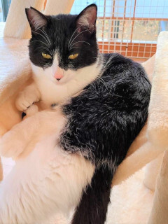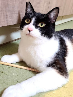| 特徴(性格など) | 仮名を『ごま』と言います。 黒白ハチワレの男の仔です。 TNR現場より保護されました。 保護当時から好奇心旺盛な元気な男の仔でした♪ 大きくなっても好奇心旺盛は変わらず、身体の大きさに比例してゴロゴロ音も大きくなっていった人間大好きっ仔ちゃんに育ちました。 猫友も大好きで、すぐに一緒に遊びたがります。 すばしっこくて何よりも遊ぶのが大好きです。オモチャ大好き、好きすぎて一度咥えると猫が変わったように興奮するのでご注意下さい。 お子さんがいるおうちは、必ず親御さんの目の届くところで大人が一緒に遊んでください。 譲渡会ではおとなし~くなってしまいますが、預かり宅では駆けずり回って元気いっぱい過ごしてます。 キャットタワーの一番上がお気に入りの場所。 撫でて欲しいときは、近くにきて頭を頭突き♪ そして、頭突きからから「コテン♪」と体を横にして「撫でて~」と甘えてきます。 抱っこも好きですが、今は遊びたい気持ちの方がつよくて腕の中に落ち着いて留まりません。 ピンと上がったうれ尻尾は縁起の良いカギ尻尾♪ とにかくゴロゴロで甘えん坊のごまちゃんを沢山甘やかして遊んでくれる方。 遊び好きでフレンドリーな先住ちゃんがいるおうち。 兄弟のカシュカシュとのご縁も大歓迎です! そんな「ごま」に是非会いにいらしてください☆ 【医療処置情報】 *健康チェック *3種混合ワクチン接種 *ウイルス検査実施(FIV.FeLV共に陰性) *検便実施 *駆虫薬投与(フィプロスポット) *寄生虫駆除(プロコックス) *マイクロチップ装着 *不妊・去勢手術 |