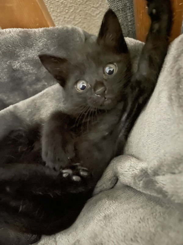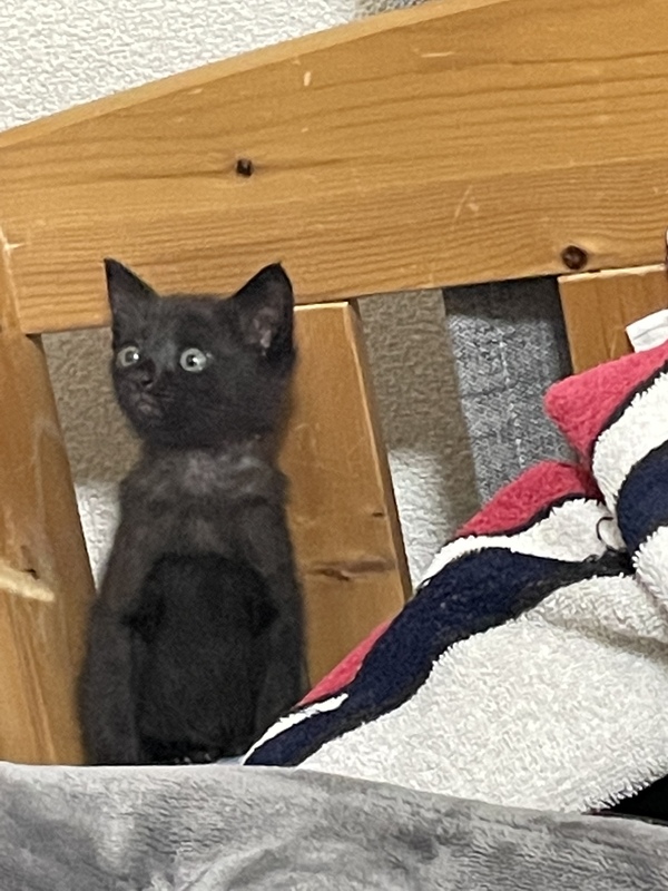 | 特徴(性格など) | クロネコの子猫です。やんちゃで良く遊んでくれます。また、食欲旺盛でたくさんご飯を食べます。 | ||