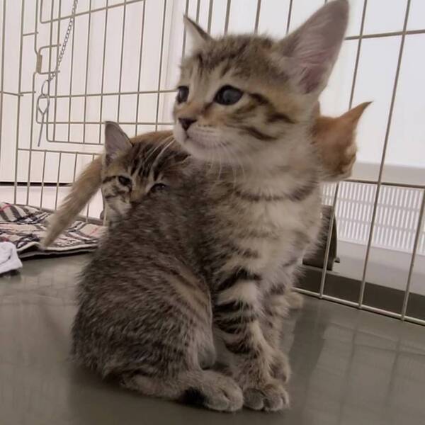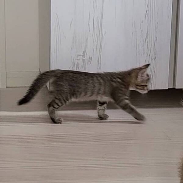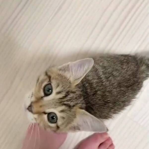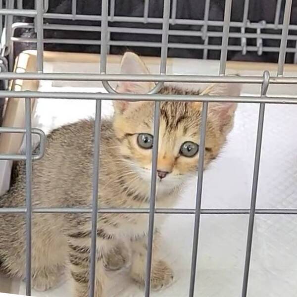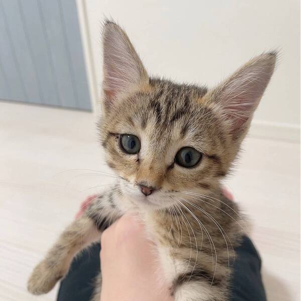 | 特徴(性格など) | キジトラの女の子です。 兄妹の中では一番やんちゃで元気です。 人が大好きで、人を見つけると鳴きながら走りよったり、ノドを鳴らしながら「なでて~」と甘えてきます。 ふわっとした毛色と毛並み、タレ目で困った顔がチャームポイントです。 基本的にはケージの中で落ち着いて過ごしており、お留守番中のイタズラなどもありません。 多頭飼育の家で生まれたので、他の猫とも遊ぶことが大好きです。 ごはんは、ドライフードを1日4回食べています。ウェットフードも時々与えています。ウェットフードをトッピングすると食い付きがとても良いですが、ドライフードだけでも食べています。 健康面は問題ありません。 エイズ、白血病ともに陰性です。 |