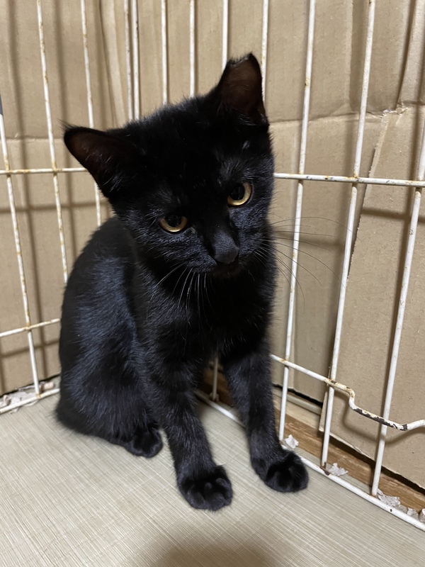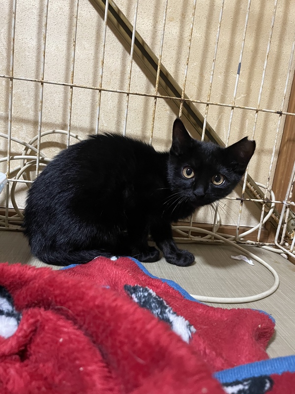 | 特徴(性格など) | 黒猫 可愛い顔をしていますが警戒心がとても強く辛抱強く接していただける方 又は猫飼育に慣れている方が良いかと思います。先住猫に対しては大丈夫だと思います。 |