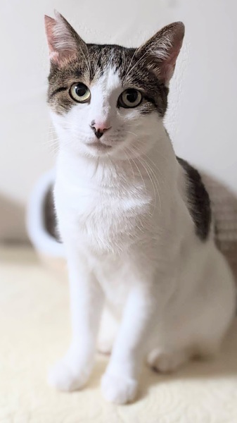 | 特徴(性格など) | キジシロの男の子です。 人間にピタッと寄り添い、友達にも、相棒にもなれる子です。 陽気で、一緒に遊んで貰うことが大好きです。 |