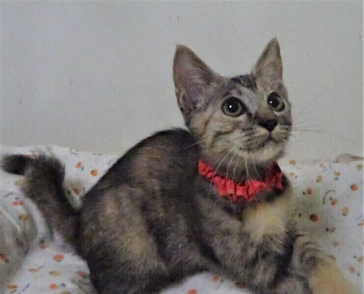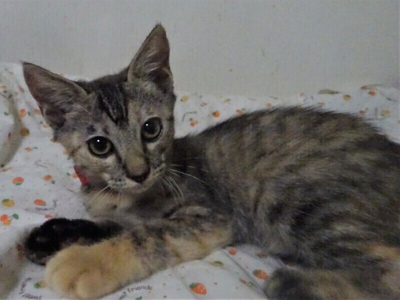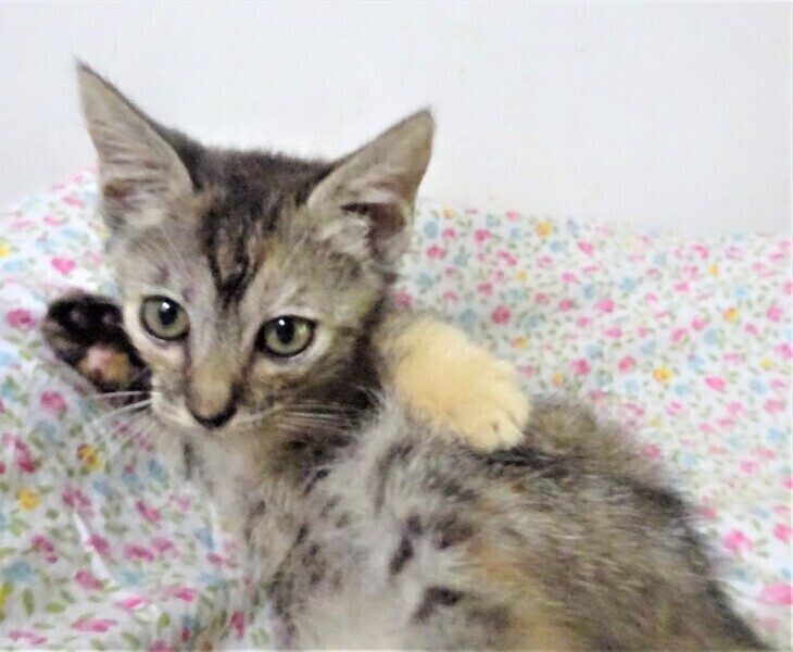 | 特徴(性格など) | 仮名: 花緒ちゃん(メス) 毛色: サビキジ 性格: ミルクで育っているので、人馴れしています。 結構、活発で好奇心旺盛で、抱っこしていても、早く離して探検するから、という感じです。 でも歩いていると足にタックル。 座っていると肩に乗り、掃除すると手元で遊びます。 人が好きみたいで側にいます。 抱っこも爪切りも大丈夫です。 兄弟はいますが、病気治療中で別々になりましたので、別に里親募集する事にしました。 大人猫とも子猫とも遊べていますから、優しい先住猫がいるお家でも良いかと思います。猫飼い初心者の方でも大丈夫と思います。子猫ですから、お届けは車で1時間圏内でお願いします。 検便済 駆虫済 ノミ取り済 ワクチン済 猫エイズ・白血病ウィルス検査はともに陰性です |
