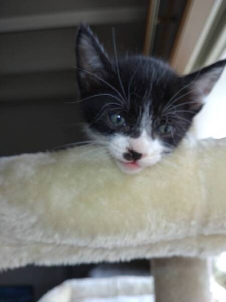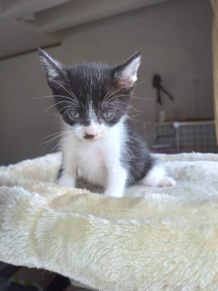 | 特徴(性格など) | 4兄妹の中で最初にミルク離れしてくれました。一番頭がいいように思います。 左耳にイヤリング模様があります。 保護した時に、病院にて健康診断と寄生虫駆除を済ませており、元気そのものです。 食事はミルク・ウエット餌・カリカリなど何でも食べてくれます。 |