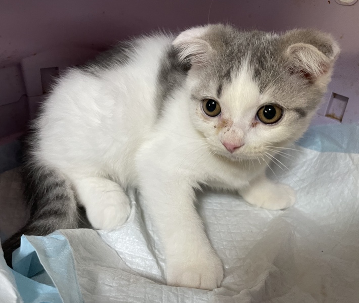 | 特徴(性格など) | 折れ耳スコティッシュフォールドの仮名 フクくんです。生後2ヶ月です。少し涙が出やすいですが異常ありません。 ロイヤルカナンマザー&ベビーキャットのカリカリを食べています。食欲旺盛で元気です。 いつでも引渡し可能です。 ※飼育環境が整っている方、お迎えが早い方優先とさせて頂きます。 |