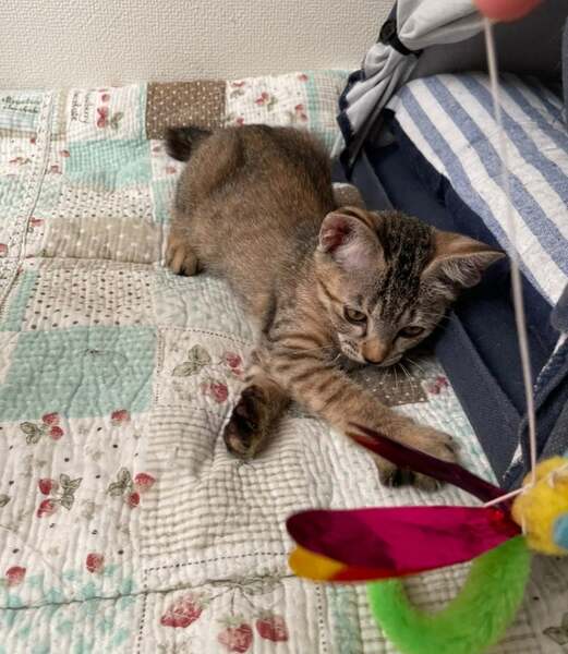 | 特徴(性格など) | 健康状態良好。食欲あります。 生後約2ヶ月。 ◎ウィルス検査エイズ・白血病共に陰性(保護直後の検査です) ◎ワクチン1回接種済み。 ◎検便異常なし。 ◎ノミダニ駆除済み。 トイレ習得済み。 ずっとお腹を空かせていたのだと思います。保護直後はごはんをがむしゃらに食べていました。 今は少し残す事もあります。ようやく落ち着いたのでしょう。 膝に乗せるとゴロゴロ、お腹も見せて甘えます。 まだ幼くおもちゃでよく遊びます。とても無邪気です。 |