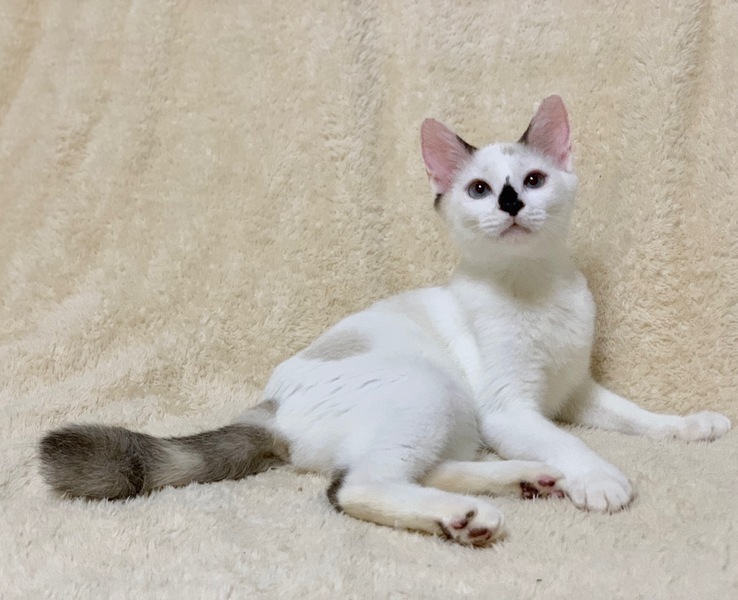 | 特徴(性格など) | 【仮名】ブリーちゃん 【性格】本当は甘えたいのにグイグイいけないブリーちゃん♪ ライトブルーアイが美しすぎる美人にゃんこです♪ 頑張って「ぴゃ~」っと超音波級の声でアピールしてきます♪ 競争率が高いので新しいオウチでゆっくり向き合ってもらえれば ベタ馴れにゃんこになるはずです! 兄妹やお友達ニャンコとの協調性はバツグン! おもちゃ遊びも一緒に出来ますよ♪ 一緒に過ごしているカリーナちゃんか 同世代にゃんこと一緒のお迎えをお願い致します♪ 先住ちゃんアリでももちろんOKです♪ ※1ピキ譲渡応相談 |