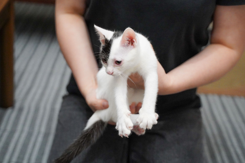 | 特徴(性格など) | 雑種の短毛の白黒ちゃんです。 とても甘えん坊でゴロゴロしながら寄ってきます。 おもちゃで楽しそうに遊びます、ぬいぐるみ、釣り竿など。 保護時に猫風邪にかかっていて、現在はほぼ完治しています。 食欲旺盛です。 9月頭にワクチン、検査予定です。 誕生日2022.7.7推定 ノミダニ駆除済み トイレトレーニング済み |