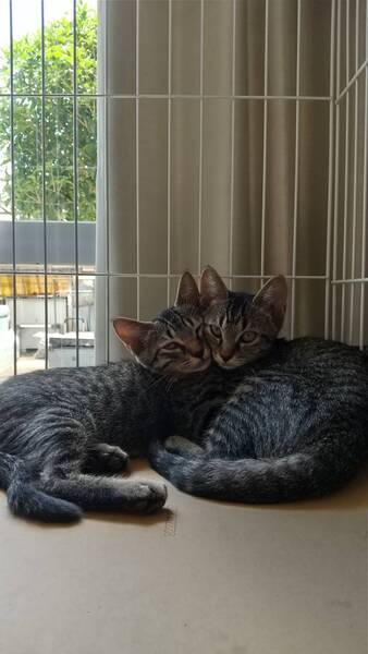 | 特徴(性格など) | キジトラ模様です。二匹保護しています。兄妹なので、とても仲良しです。 |