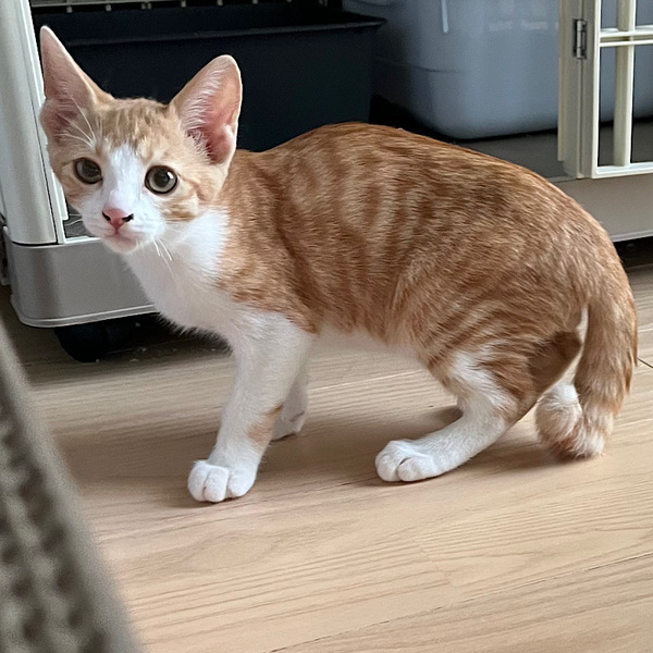 | 特徴(性格など) | 3にゃん兄妹の可愛い顔の男の子。しっぽは幸せを引き寄せると言われているカギしっぽです。 野良猫のお母さんに育てられた3兄妹の一匹です。 お母さん猫の教育がしっかりしていて、警戒心が強めです。 食欲旺盛でカリカリもウェットもよく食べます。 一人遊びも猫と遊ぶのも大好きです。 少し怖がりですが、初めて猫を飼う方にも安心の穏やかで優しい性格です。 人間が近付くと撫でてほしくて寄ってきます。 まだ膝の上や抱っこは怖いので、慣れるまで我慢強く接してくれる里親さんにお願いしたいと思っています。 ▼保護主Instagram▼ https://www.instagram.com/kimi43326/ |