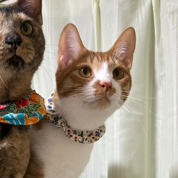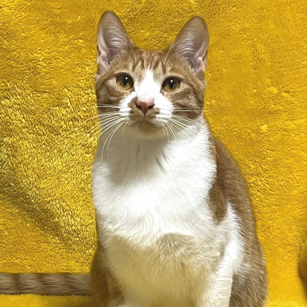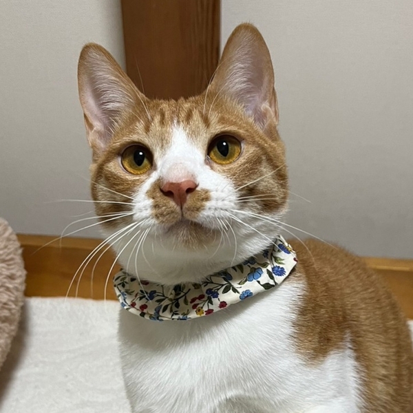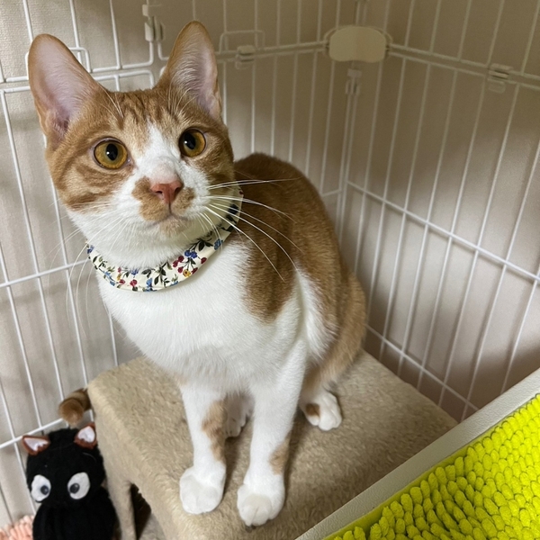 | 特徴(性格など) | 女姉妹の中で唯一の男の子、一番体格が良く、毛並みもつやつや、おなかはふわふわ、しっぽがとーっても長くて立派な茶白男子きなこです! ケージを開けると飛び出していくお転婆姉妹とは対照的に、自分のタイミングでお部屋のパトロールに出るマイペースな性格。 姉妹を撫でていると、僕も〜と、間に割り込んできて一番撫で易い位置取りに滑り込み、お膝を独占!ちゃっかりマイペースな性格ですが、なぜか憎めない愛されキャラです!最近はお布団の中に潜り込んで一緒に寝るほど甘えん坊さんに育っています。 猫も大好きで、大人猫ちゃんにも臆することなく近づいてご挨拶します! ちょっぴり内弁慶なので初対面だと緊張してしまいますが、お家では、人も猫も大好き!世界中のみんなボクの友達〜!という感じがするくらい友好的なこです。 普段の様子を動画にてご紹介していますので宜しければご覧ください https://youtu.be/pHI849UOxSM https://youtu.be/llAuB-YItno |