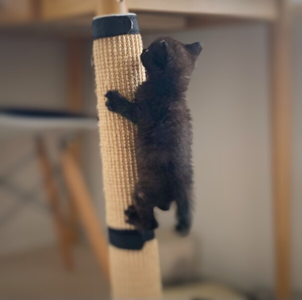 | 特徴(性格など) | 性格は甘えん坊で好奇心旺盛。遊ぶのが大好き、子猫用のおもちゃでで元気に遊んでいます。 わが家の先住猫が大好きで、よく遊びに誘っています。 初対面の人にはちょっと人見知りしてしまいますが、あっという間に馴染んで甘えてきます。 用意した爪とぎを使えて壁や家具での爪とぎはしません。 猫トイレも完璧で失敗したことはありません。 被毛はふわふわで触り心地抜群です。 |