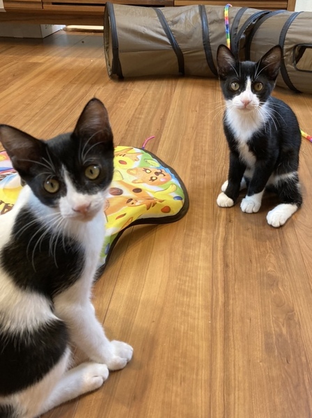 | 特徴(性格など) | よもぎ君(背中が白黒) 好奇心旺盛でひょうきんな子です むぎ君(背中が黒) おっとりとした怖がりさんで少しドジっ子さんです 2匹とも少しづつ人馴れしてきています。 抱っこも少しづつさせてくれます ゆっくりこの子達のペースに合わせて頂けたらと思います |