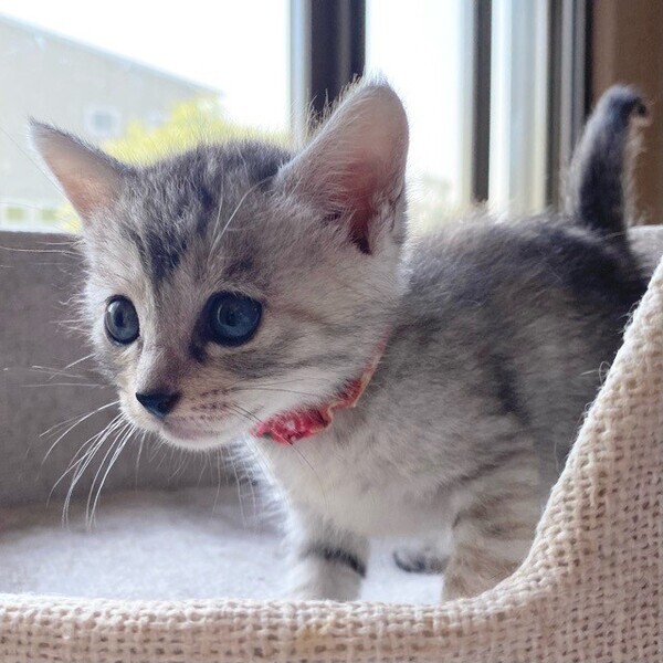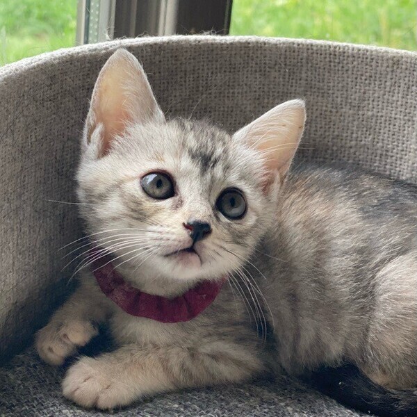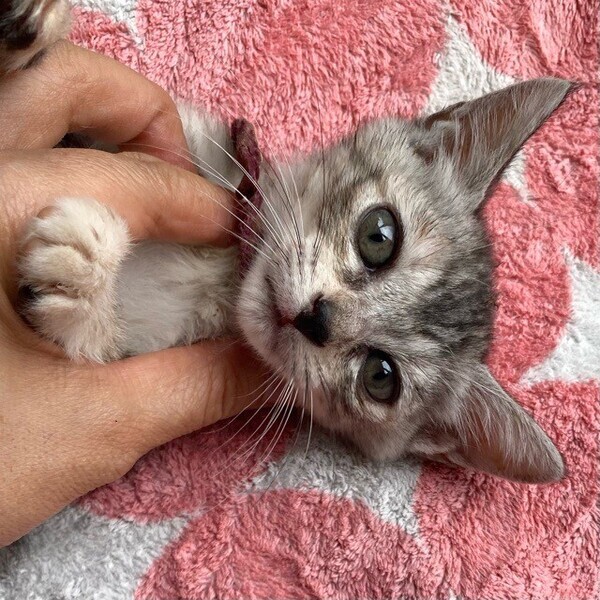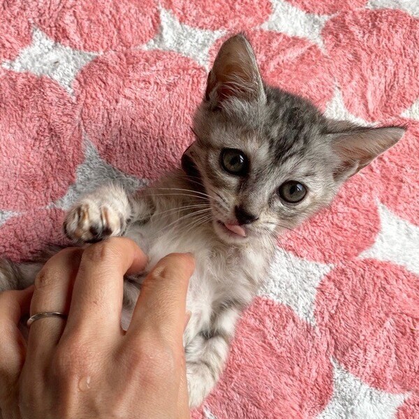 | 特徴(性格など) | お茶目な甘えっコ「グリコ」ちゃん❤ コロコロ日向ぼっこも大好き♪静かな、おっとり甘えっコ♪ 現在、ドライフードを24時間の置き餌として栄養補給、水分補給のため一日3回パウチを与えています。 <推定誕生日:2022年7月始め> |