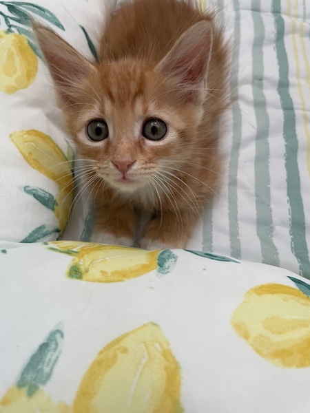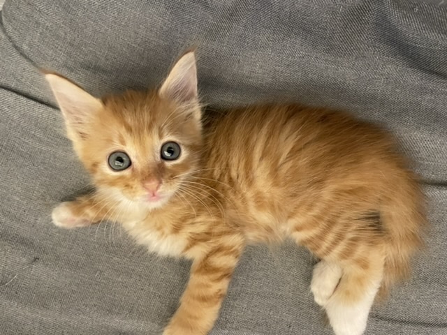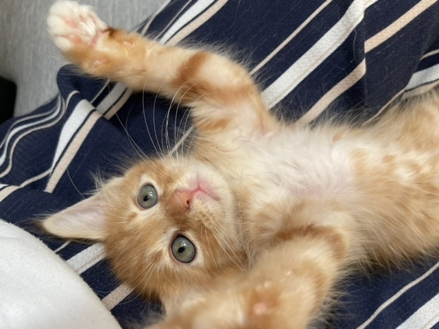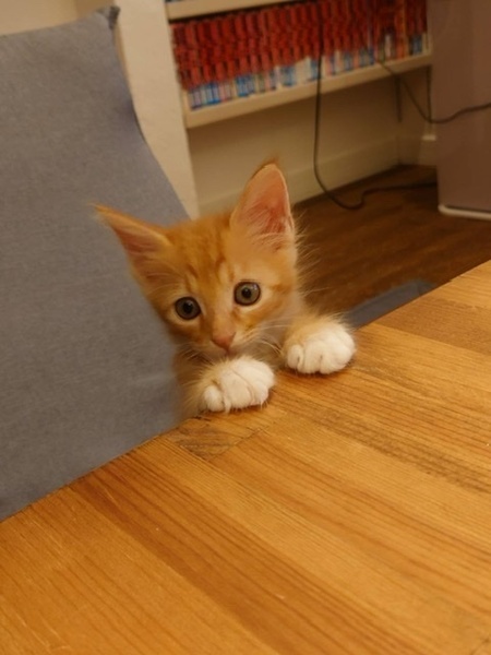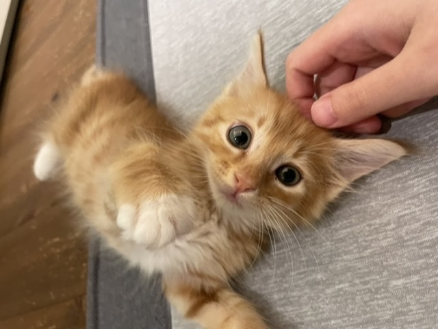 | 特徴(性格など) | 先日ようやく2ヶ月くらいになったとのことでエイズと白血病の検査を行い陰性でした。 障害もなく健康な子猫くんで風邪も殆どひくことなくすくすくと育ってくれています。 食事も特に好き嫌いなくカリカリでもウェットフードでも食べてくれます。 保護したときは心配するくらいおとなしかったのですが、今は安心したのかとにかく人懐っこく甘えん坊で元気な子猫です。 私達が歩くとついてきますし、足元で寝たり、座椅子の上まであがってきて肩によく乗ってくれます。 先住猫にも積極的に怖がることなく絡みにいっていましたので多頭飼いのところでもすぐに仲良くなると思います。 とても頭の良い子でトイレに関しても保護したその日にすぐ覚えて今まで粗相をしたことはありません。 ただ少々噛み癖があるみたいでぬいぐるみで遊ばせています。 茶トラで足とお腹が白く靴下を履いています。 中毛のとても可愛い子です。 |