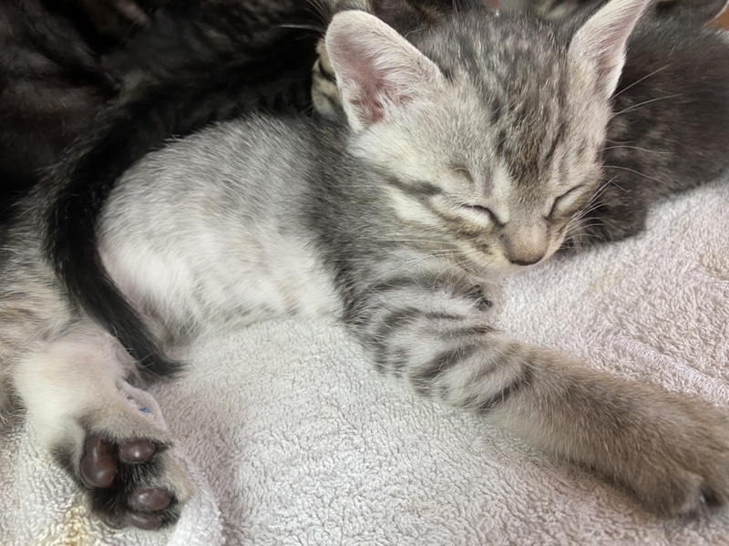 | 特徴(性格など) | アメショのような白トラ柄のメス猫です。 現在離乳食をたべて、お皿から水を飲んでいます。 トイレはまだ練習中ですが、トイレに入れてあけるとできるようになってきました。トイトレ完了後の譲渡もできます、ご連絡ください。 |