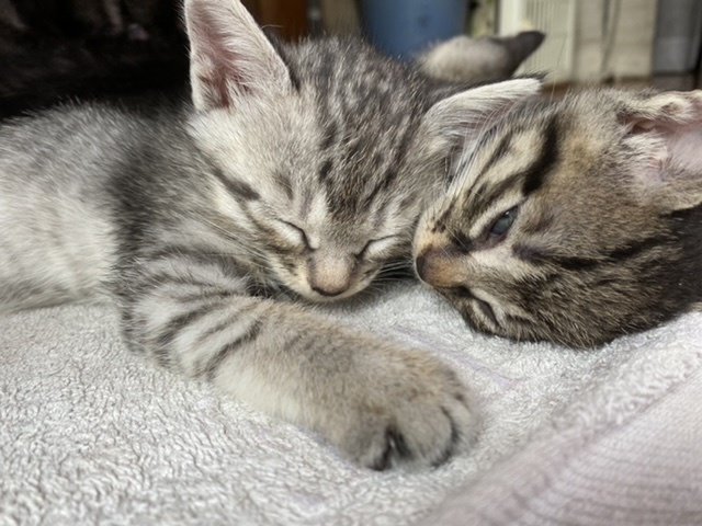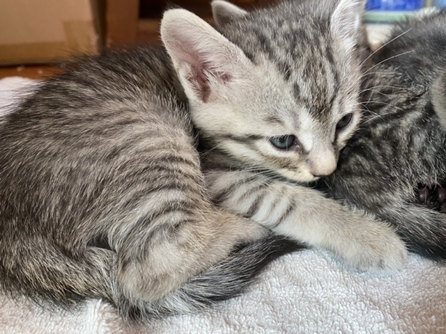 | 里親募集する理由 | 野良猫が納家で子猫を産み、野外での更なる繁殖を避けるため母子共に捕獲して保護しています。寒い季節がきますので、できれば安心できる環境で生涯くらせるご縁があればと思い募集しました。 母猫も人馴れしており、子猫も威嚇がなくなりました。撫でさせてくれて、かわいいです。500mlペットボトルサイズで、年齢は2ヶ月前半くらいかもしれません。 黒猫の母猫の他、子猫5匹を保護しています。この子と同柄の白トラオスもいます。いつもくっついて寝たり、じゃれたりして過ごしています。 まずは対面して決めたいという方も是非ご連絡ください。 |