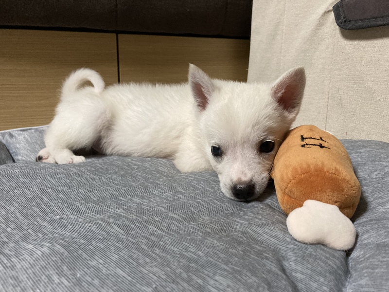 | 特徴(性格など) | 【仮名】ぽっつん 【生年月日】推定2022年7月中旬頃生 【種類】MIX 【毛色】ホワイト(耳が少し茶色に変化してきました) 【性別】オス 【去勢】未 【混合ワクチン】9月中旬頃1回目接種予定 【駆虫】済(継続中) 【健康状態】良好 【性格】子猫と遊んで過ごしていましたが先に卒業したため、現在は先住犬にくっついて歩いてます。距離の詰め方は下手くそでしつこくして怒られていますがへこたれずまだまだ生意気です。 あまりベタベタ甘える方ではありませんが抱っこされるとされるがままです。 トイレトレーニング中でケージ内はできますが、室内だと半分くらいの確率です。まだ始めたばかりなのでこれからです。うんちは食後が多いですがケージ内ですることを嫌がります。 留守と就寝時はケージで過ごせます。夜鳴きはしなくなりましたが朝は出してコールがはじまります。 【兄妹】ムーすけ ♂(募集中)・(募集中)・チョコミント ♂(募集中)・チョコチップ ♂(募集中) |