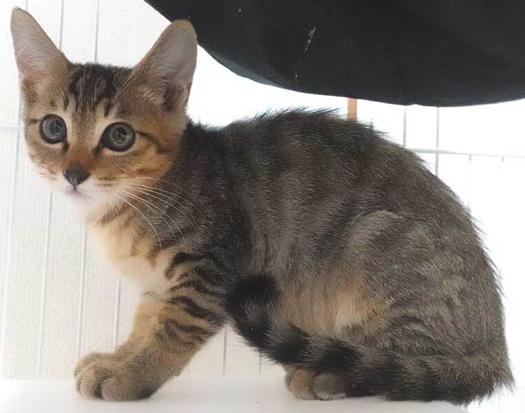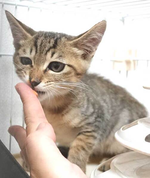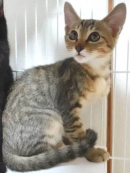 | 特徴(性格など) | 2022年9月1日入所の大変かわいらしいキジトラ子猫の二ヶ月くらいのオスです。 人馴れしています。 好奇心旺盛で元気です。 是非シェルターにお越しください。 |