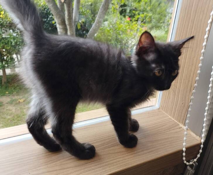 | 特徴(性格など) | 初めは黒猫でしたがどんどんグレーの長毛になっていっています。 おっとりしていて人を見るとゴロゴロ言いながら近づいてくるとても人懐っこい子です。 |