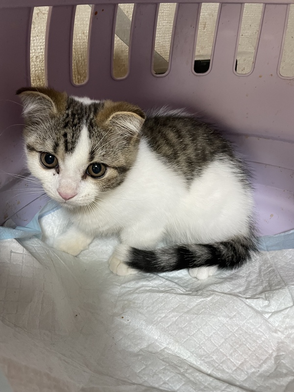 | 特徴(性格など) | 折れ耳スコティッシュフォールドの仮名 アルくんです。生後2ヶ月です。 ロイヤルカナンマザー&ベビーキャットのカリカリを食べています。食欲旺盛で元気です。 いつでも引渡し可能です。 ※飼育環境が整っている方、お迎えが早い方優先とさせて頂きます。 |