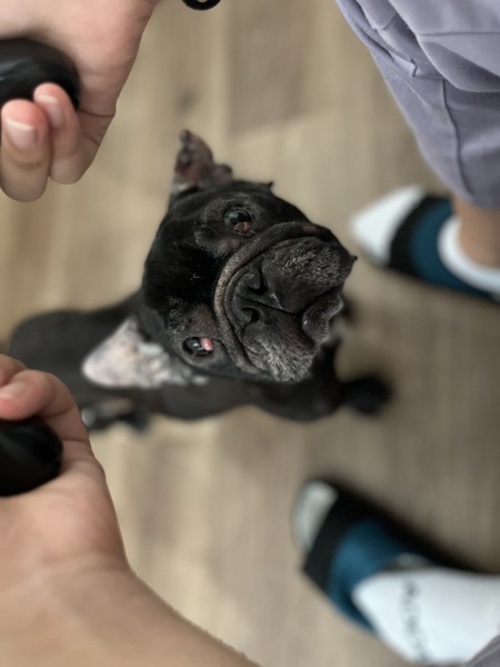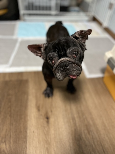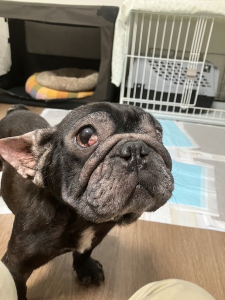 | 特徴(性格など) | 名前:ロテちゃん 犬種:フレンチブルドッグ 性別:メス♀ 毛色:黒 年齢:7歳くらい 体重:8.6kgくらい 性格:とっても平和主義者で決して怒らずとても優しいおっとりさん。 人も大好きで、どんな人にもちゃんと挨拶の出来る子。 レスキュー時より皮膚の状態が悪く、全身をかなり痒がっており、炎症や掻き傷が数カ所に見られた為、週1回のシャンプーと投薬にて様子観察中。 両眼にチェリーアイあり。(一度手術したのですが、再発したので再手術予定あり) 右眼ドライアイのため1日3回点眼薬。左眼は腫瘍のため1日5回の点眼薬。 トイレシートは使える。7割ほど成功だが、食糞するのでタイミングを把握するよう心がけている。 留守番と夜間はハウスでとても静かに過ごせる。 散歩は未経験なので抱っこから行う予定。よく食べ、よく寝る。 皮膚をケアして寄り添って生活してくださるご家族様をお待ちしております。 |