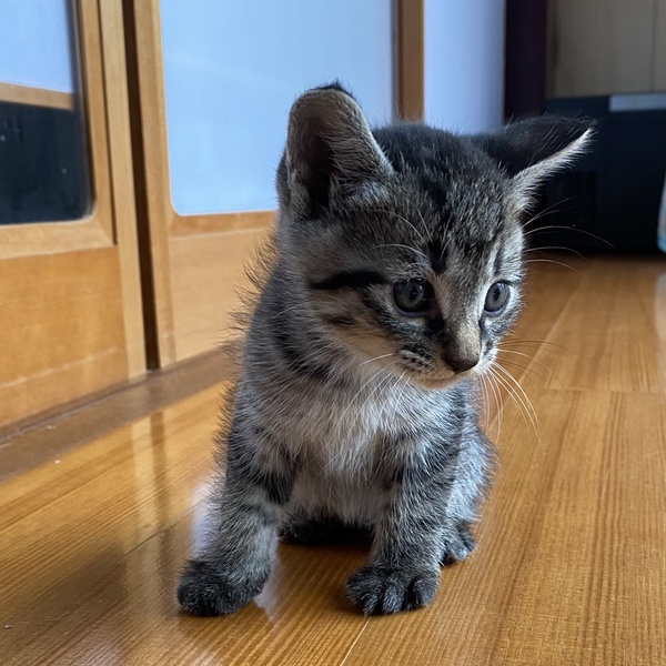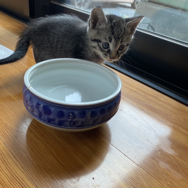 | 特徴(性格など) | 薄いブラウンと黒のキジトラ柄、オス(推定)です。まろ眉が可愛いです^ ^ 現在子猫用フードを食べて、お皿から水を飲んでいます。 トイレはまだ練習中ですが、ほぼ出来ます。 |