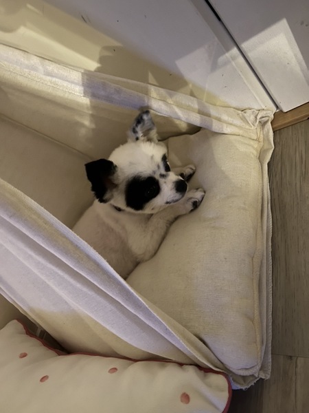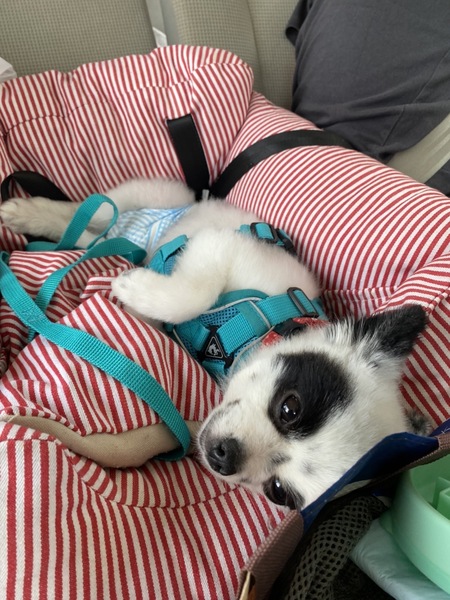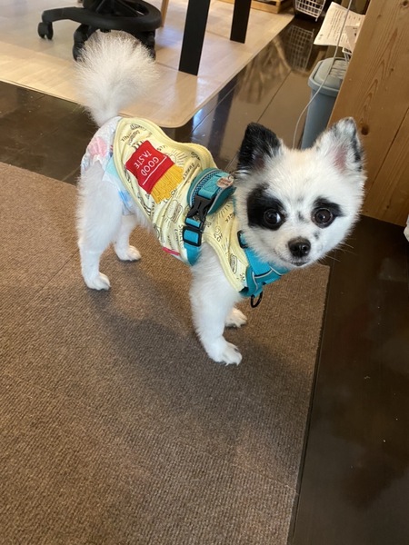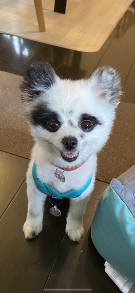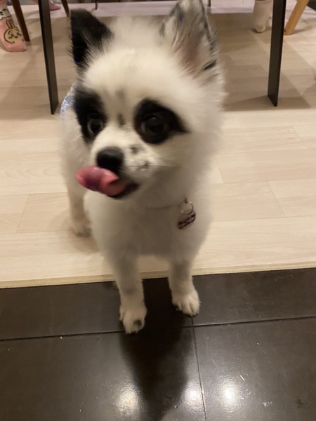 | 特徴(性格など) | 名前:ボン・クレー 犬種:ポメラニアン 性別:メス♀ 毛色:白黒 年齢:4歳(2018.12.27生まれ) 体重:10kgくらい 性格: ご飯 よく食べ、超早食い! 好き嫌いなし。 朝 7:00 夜 18:30 1回の食事量 モグワン16グラム それと…茹でたじゃがいも・ナスやキュウリ・皮むきしたトマトなど2種類ほどを大さじ特盛1杯、カリカリ後に手であげてます。 「シット」「ウエイト」を覚えながらあげてます。 食べたものは他に… スイカ・梨・ブルーベリー ゴーヤも食べちゃう!手のひらにおやつを乗せてあげるとたまに皮膚もかじる。 見えてないのか、お皿にフードの粒が残っている時がある。 お皿は早食い防止のお皿を使用。 トイレ シートの認識アリ オシッコ成功率70% ウンチ 成功率30% マーキング時々アリ トレーニングをもっとすれば成功率は上がるはず。 寝る時はオムツ必須です。 寝る場所 夜はサークルのベット 昼はソファ・その辺 時々バリケン 寝る場所が定まらず、色んなところで寝るので踏まないよう注意! 膝の上に乗せてとニコニコしながら前足を乗せてきます。ピョンピョン跳ねてねだってくるのが可愛い! 22:00ごろ〜6:30ぐらいまでサークルで過ごしてますが、オムツにオシッコ必ずしてます。時々ウンチも… 散歩 めちゃくちゃ喜びます! 昼夜問わず好き。車や自転車が近くを通るのはダメ。 歩き始めて2メートルで右に寄りがち。ちょっと歩いては止まったり、フセしちゃう。声がけやおやつで騙し騙し、最長2キロぐらい歩きました! 後は抱っこです。ボンちゃんのペースをしっかり見て、無理せずゆっくり楽しんでいただけると○。 ブラッシング 大大大好き! 頭から何かをくぐらせられるのが苦手。 時々、何かわからないタイミングで威嚇噛みすることがありましたが最近はあまりない。 カーペット生地を舐めるのが好き。 いきなり何かされるのがNGなので声がけしてから! 部屋から出て、しばらくして戻るとしっぽフリフリ、ニコニコして迎えてくれます。足に絡んできたりするので踏まないよう注意!なんかちっちゃく噛んでくる… 甘噛みもするけど、叱るとやめますが遊ぶ程度の強さです。 すぐにお腹を見せて甘えてきます。 眠いと半目になったり、時々何かにぶつかったり…ボンちゃんに笑わせてもらってばかりの毎日。 キッチンに居るとよく首を傾げながら見てきます。前足を片方上げて…。可愛い。 とにかく可愛い。 赤ちゃんみたい。 散歩してると時々声かけられます! パンダみたいとか、とにかく可愛いとよく言われます! |