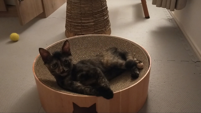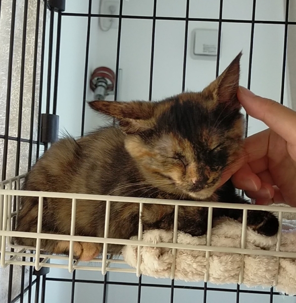 | 特徴(性格など) | サビ柄女の子 現在体重1.3キロ オレンジ、ブラウン、ブラック カラー 保護時 ノミダニ駆虫 済 お腹の虫薬 済 ワクチン2回目 9/5以降予定 エイズ白血病 陰性 三兄弟の唯一の女の子で、お兄ちゃんたちから取っ組み合いを仕掛けられたり、ごはんも食べるのがビリだったり、少しどんくさい1面もありつつ、よく食べよく遊びよく寝ます! 保護時からトイレは何回か種類が変わってもミスなくしっかりできたのと、お水もたくさん飲んでくれる子です。 兄弟の中では警戒心が強く、怖がりさんでしたが、保護主と1体1で向き合い、今はのんびりしてる時に撫で撫で、ゴロゴロ発動しています!顔周りの撫で撫でが好きみたいです(*´︶`*) おもちゃが大好きで、運動神経も抜群です。 現在は夜就寝時、お留守番時はゲージに入れています。 怖がりさんですが、少しずつゆっくり慣れていってくれてるので、正面からゆっくり向き合ってくださる方と信頼関係を築いていただきたく思います(^ ^) |