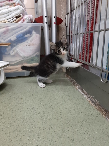 | 特徴(性格など) | キジトラの女の子と 白と黒の男の子です (黒の部分にしま模様が入ってます) |