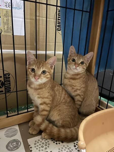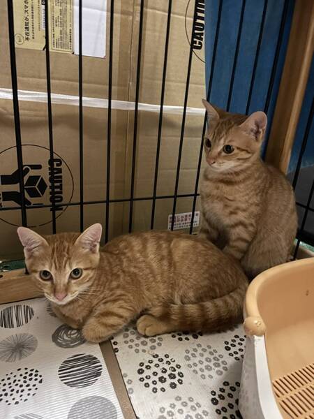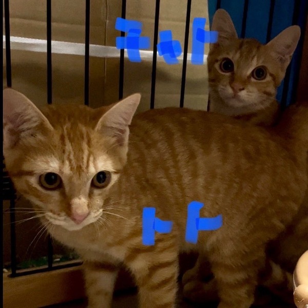 | 特徴(性格など) | 茶トラ トトくん:ゴロゴロ甘えん坊です。 チャトくん:控えめな性格ですがシャーもなくおりこうです。 |
