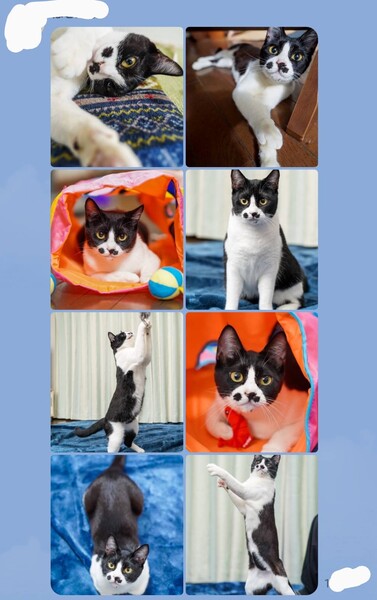 | 特徴(性格など) | 白黒ハチワレのツンデレ女子。 ナデナデ大好き。撫でてあげるとゴロゴロゴロンします。 おしゃべり好き!ご飯やおやつも好き!おもちゃで遊ぶのも好き! 最近はちょっとポッチャリ気味でジャンプ力が…(^^;))) お顔はこの後キレイなハチワレ、身体は可愛いぶち模様、もふもふ体型がたまらない、魅惑のボディ。 穏やかなにゃんこライフをご希望の方にぴったりの大人ネコさんです。 |