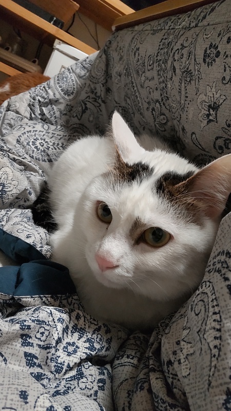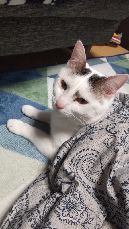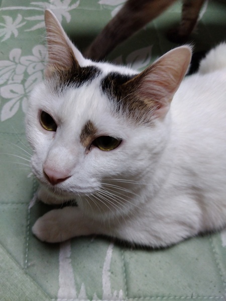 | 特徴(性格など) | 毛色は白が多めのキジトラですが、お母さんが三毛猫なので少し茶色の毛もある、大変珍しい毛色です。 性格は活発で人が大好きです。 出待ちも帰り待ちも1番に来てくれて、ゴロスリにゃんしてくれます。 とても甘えたなので一緒に寝るとフミフミしてくれます。 |