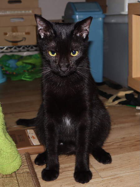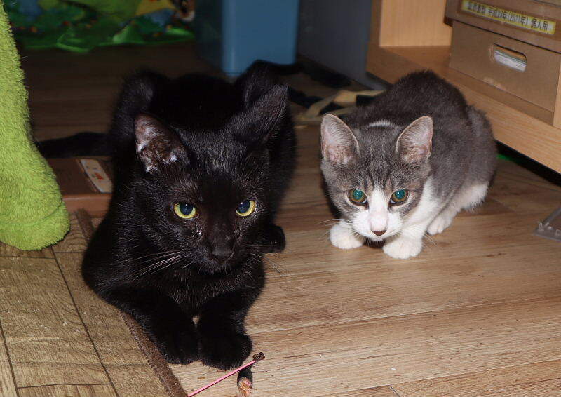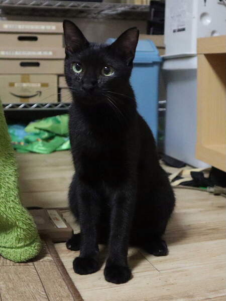 | 特徴(性格など) | 黒 おなかに少し白有り。 逃げますが、おとなしく抱っこさせます。 次から次へと保護をしてくる子猫たちの面倒を見たり、 一人で、ネコジャラシに飛びついて遊んだり、 お母さんに抱っこさせられたりしないといけないので、結構忙しいです。 |