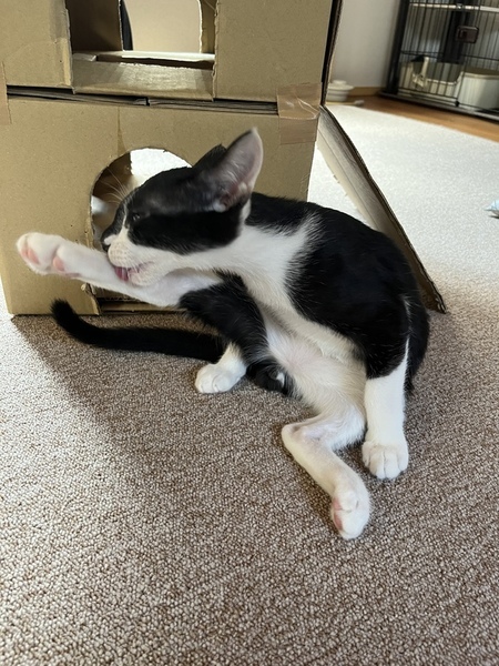 | 特徴(性格など) | とても健康です。 ・ノミダニ駆虫済み ・ワクチン2回接種済み ・9/16去勢手術予定 普段は一匹でゆったり過ごしていますが、調子が出てくると元気に遊びます。 見慣れない人には少し警戒してサッと隠れますが、誰でも抱っこOKです。 すぐに慣れて、隙があれば膝に座り込み、潤んだ瞳でこちらを見ながらゴロゴロ。こんなに甘えられる子は珍しいと思います。 ご飯もモリモリ食べ、筋肉質、長い手足と尻尾。 シュッとしたクールな見た目とは違って甘えん坊のイケメンです。 |