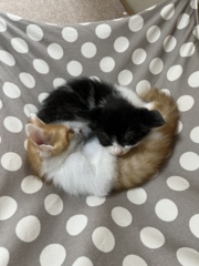 | 里親募集する理由 | 餌やりをしていた知人宅で母猫2匹が子猫7匹を敷地内で育てるようになり相談を受けました。保護環境の改善がなかった為、私が引き取り、保護主として里親募集しています。 5匹は里親へ、1匹はうちの子に。(先住猫と計3匹となる為これ以上飼えません) 飼い主不在確認済で、母猫の手術は完了してます。 この子を生涯家族として、大切に可愛がってくださる方を募集しています。 |