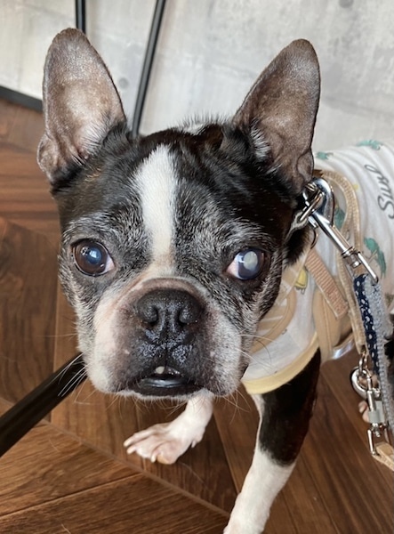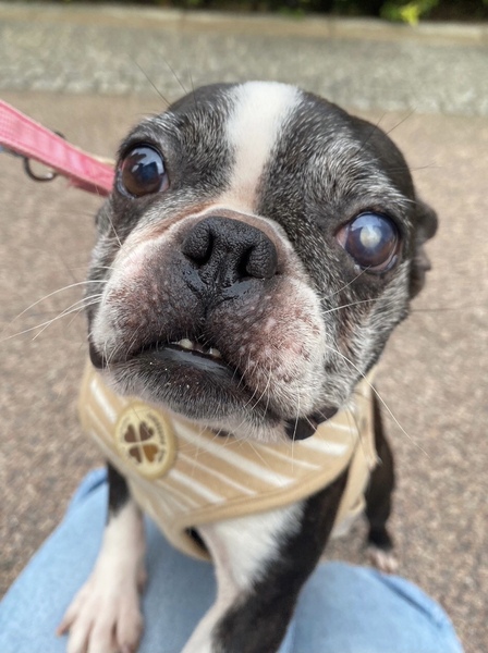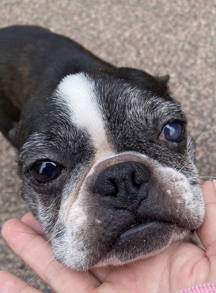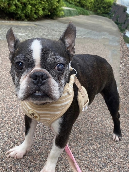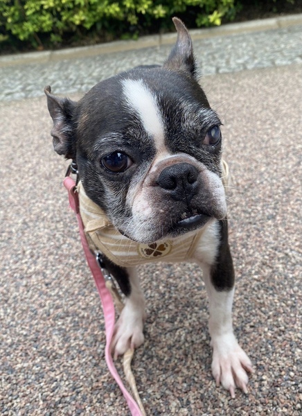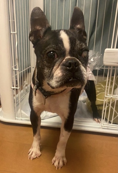 | 特徴(性格など) | ■特徴(仮の名前:あんこ) ボストンテリア ♀ 推定8歳 体重5.4キロ ■性格・暮らし ・臆病なところがありますが、甘えん坊です。 ・他犬と問題なく過ごせます。 ・ペットシートの認識があります。 ・お散歩は歩けます。 ・年齢相応の変形性脊椎症があるので、サプリで様子を見ています。また、パテラ(G3)があるので滑りにくいよう配慮が必要です。 ・左目は白内障ですが、日常生活に問題はありません。 ■今までに行った医療行為 ・避妊手術 ・混合ワクチン接種 ・フィラリア抗原検査(ー) ・検便 ・歯石除去 ・血液検査 ・マイクロチップ装着 ・鼠径ヘルニア整復 ・右尾根部嚢胞部分切除 ■今後行う予定の医療行為 ・なし |