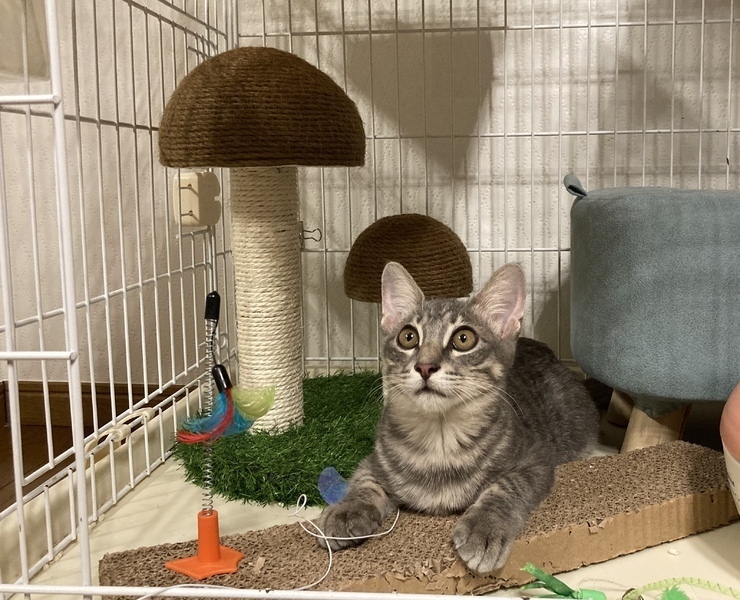 | 特徴(性格など) | 8月下旬、地域猫活動中に妹(かごめちゃん)と一緒に保護しました。(生後推定3ヶ月) 3ヶ月以上、酷暑にも負けず生き抜いた兄妹です。 保護してすぐは人間怖いビビりさんでしたが、毎日少しずつ慣れてくれています。今ではナデナデすると気持ちよさそうにうっとりしてくれるように♡ 自慢はなんと言ってもシルバーグレーの毛並み♡ オモチャで遊ぶようにもなりました♡ お外にいた時から妹(かごめちゃん)を守っている優しいお兄ちゃんです♡ 妹のかごめちゃんは、トライアルへ出発しました! 妹以外の猫とも仲良くできます♡ らいもん君にも温かい家族が見つかりますように… よく食べる健康体です♡ 愛情と時間をかけてゆっくり距離を縮めてくださる方募集中! Instagram: @lorca.cat |