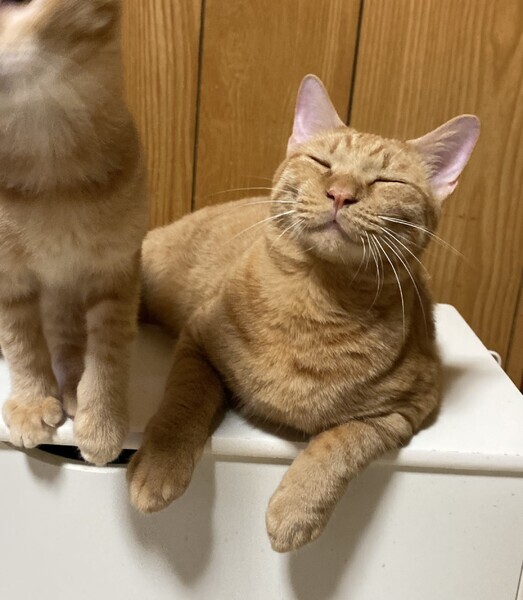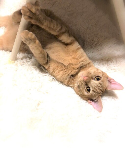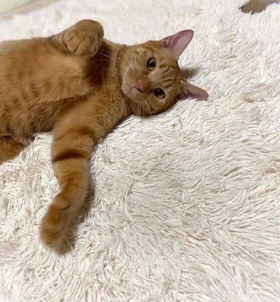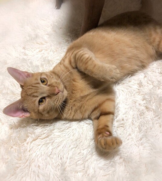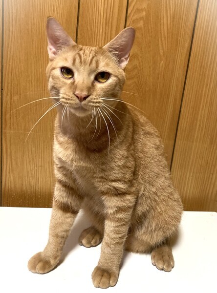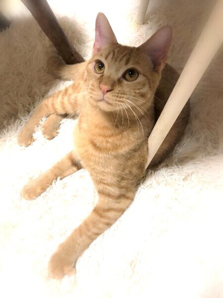 | 特徴(性格など) | 濃いオレンジ茶トラの男の子 手足が大きいむっちりさん 環境に慣れるまで慎重ですが、おっとりのんびり優しい性格です。 ちびねこのお世話好きで、様子を見ながら上手に遊んでくれます。 ちびっ子の危機?に走って駆け付ける良いお兄ちゃんです。 |