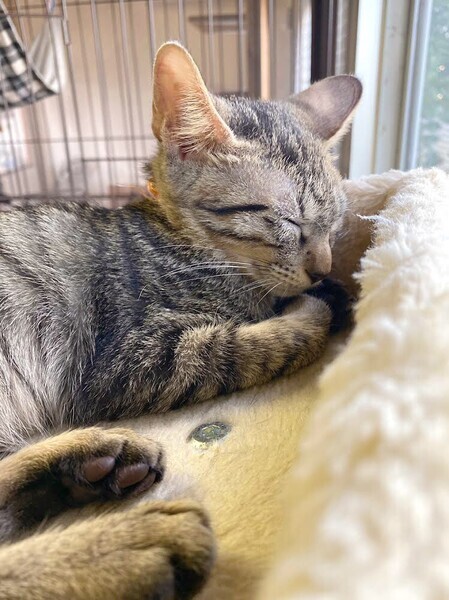 | 特徴(性格など) | おっとり甘えっコ「クリリン」ちゃん❤ 兄弟姉妹たちの中で、少し控えめ、ちょっぴりドジでマイペースお嬢ちゃま♪ 現在、ドライフードを24時間の置き餌として栄養補給、水分補給のため一日4回パウチを与えています。 <推定誕生日:2022年7月始め> |