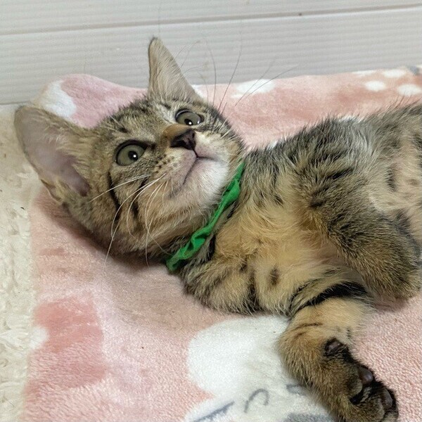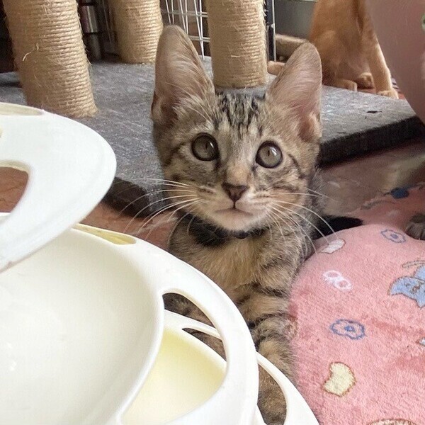 | 特徴(性格など) | おっとり♪お茶目な「ヤムチャ」ちゃん❤ 穏やかで静かに好奇心旺盛な甘えっコ♪ 現在、ドライフードを24時間の置き餌として栄養補給、水分補給のため一日4回パウチを与えています。 <推定誕生日:2022年7月始め> |