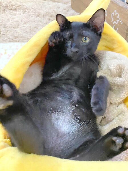 | 特徴(性格など) | 遊ぶのも食べるのも甘えるのも一生懸命な「テンシン」くん❤ 突然、初めて見るものに威嚇してみせたり、匂いクンクン確認してツンツンしてみたり♪陽気な男のコ 急に手を出すとちょっとビビるけど、そっと身体を預けてくれる甘えん坊♪ 現在、ドライフードを24時間の置き餌として栄養補給、水分補給のため一日3回パウチを与えています。 <推定誕生日:2022年7月始め> |
