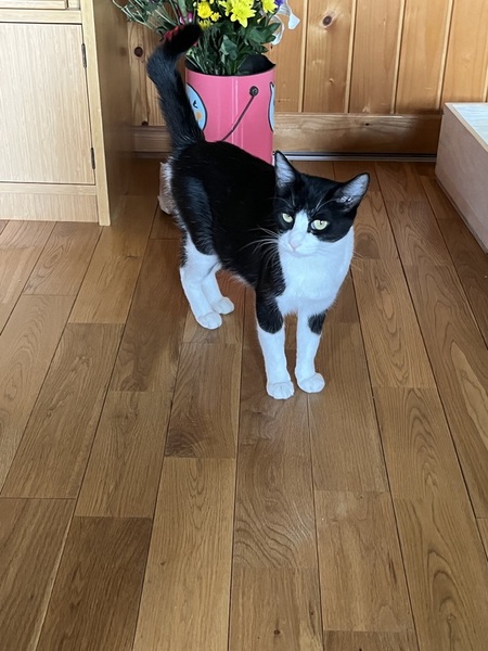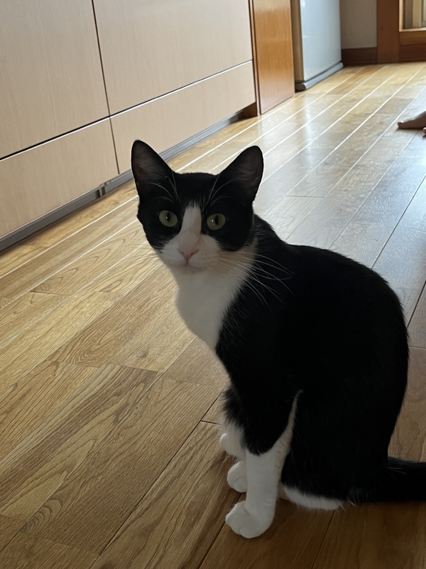 | 特徴(性格など) | 猫の健康状況 体重約3.5Kg程度 健康そのもの 近所の動物病院にて検査を受けた結果 検便実施結果・・駆虫薬継続中 血液検査・・・未実施 9月中に去勢手術とワクチン接種をする予定ですので、合わせて血液検査を実施予定 猫の特徴 とても賢いで猫で、保護した直後から現在まで排便・排尿を失敗した事が無く、夜はゲージから出して自由にさせていますが 夜に鳴いて困らせる事も無く、私たちが朝起きてくるのを待っています。 保護する時にに洗濯ネットに入れる際暴れた経緯もあり、急な動きで近づくと唸り声は出さないものの、ギット睨みを効かせ てきます。 保護してから、3ヶ月程度家の中で自由に過ごしており警戒感は若干薄れてきているようです。 食事の際は体の何処を触っても怒らず、 ゆっくり驚かさない様にすると抱っこもさせてくれます。 今年初めてのお産で4匹の子猫を産んだ新米母猫です。 子猫も3ヶ月を過ぎそろそろ乳離れの時期に来ている様で、授乳を嫌がる事も有ります。 ご飯は1日2回に分けカリカリとたまにウェットをあげています |