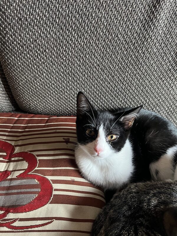 | 特徴(性格など) | 猫の健康状況 体重約2.4Kg 健康そのもの 近所の動物病院にて検査を受けた結果 検便実施結果・・駆虫なし 血液検査結果・・猫エイズ陰性 9月中に去勢手術とワクチン接種をする予定です 猫の特徴 白黒のハチワレです。 しっぽが短くまるまって付いています。 兄弟の中で一番大きな猫ですがビビリ屋(検査で病院に行った際この子だけがブルブルと小刻みに震えていました。) 人馴れしています。 抱っこするとすぐにゴロゴロと喉を鳴らします。 べったりと抱っこされても怒りません。 とっても元気な男の子です。 兄弟猫(4兄弟)と元気に遊んでいます。 おもちゃには目がありません。 ご飯は1日2回 カリカリとたまにウェットをあげています |