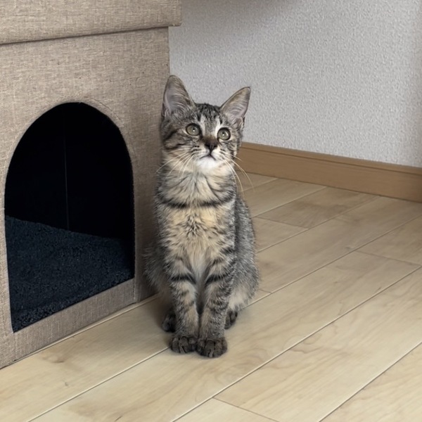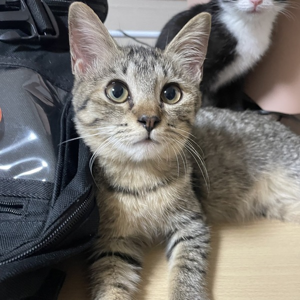 | 特徴(性格など) | ゴロゴロいいながらスリスリしてくる 甘えん坊ボーイ? とってもいい子で初めましての人でも触れるくらい、人馴れしてます。 お顔が丸顔でおめめクリクリが特徴! とーーーーってもキュートです。 現在、点鼻点眼して猫風邪の治療中です!!早く治すぞ~ 左右対称のキレイな柄が美しい! 表情も穏やか。あどけなさも残る美猫。どんな風に成長するのか楽しみです。 |