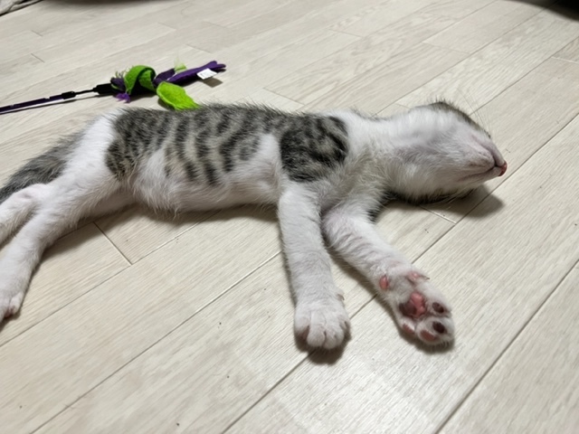 | 特徴(性格など) | 【仮名】たっくん3ヶ月 【性別】オス 【性格】甘えん坊 生後3週齢の時に保護しました。茂みの中でずーっと鳴いていて、母猫も兄弟もおらず独りぼっちでした。 ミルクと離乳食でとても元気になり、生後3ヶ月位になりました。 ひとりで育ったせいか、のんびりしたところがあります。 母や兄弟と育ってないので寂しい思いをしましたが、とても甘えん坊です。 遊び疲れると膝の上で寝たり、お布団で一緒に寝たりします。 沢山遊んであげてください。 愛くるしいたっくんを友として一生面倒を見て下さる責任ある方を募集しています。 |