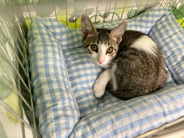 | 里親募集する理由 | 生後3週齢の時に保護しました。茂みの中でずっと鳴いていて母猫も兄弟もおらず独りぼっちでしたので緊急で保護しました。 健康状態良好です。 食欲旺盛、おトイレもきちんとできます。 3種ワクチン済 ウイルスチェック済 (エイズマイナス)(白血病マイナス) 駆虫済 |